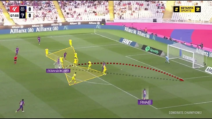 На этот раз рикошет и неуклюжая игра Хави Эрнандеса (не оригинального) позволили Левандовскому вывести Ямала 1-на-1: