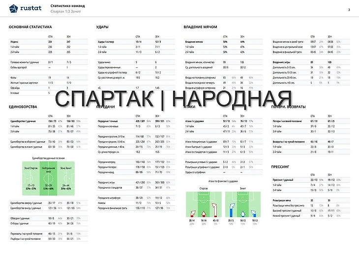 В общем гости действительно оказались сильнее.Это надо признать,что показывает и статистика.К примеру Спартак выиграл меньше единоборств на чужой половине (24 против 44).Также игроки пытались идти в дриблинг за счет действий Промеса,Cоболева(именно Саша пытался играть в подыгрыше причем неплохо у него это получалось).