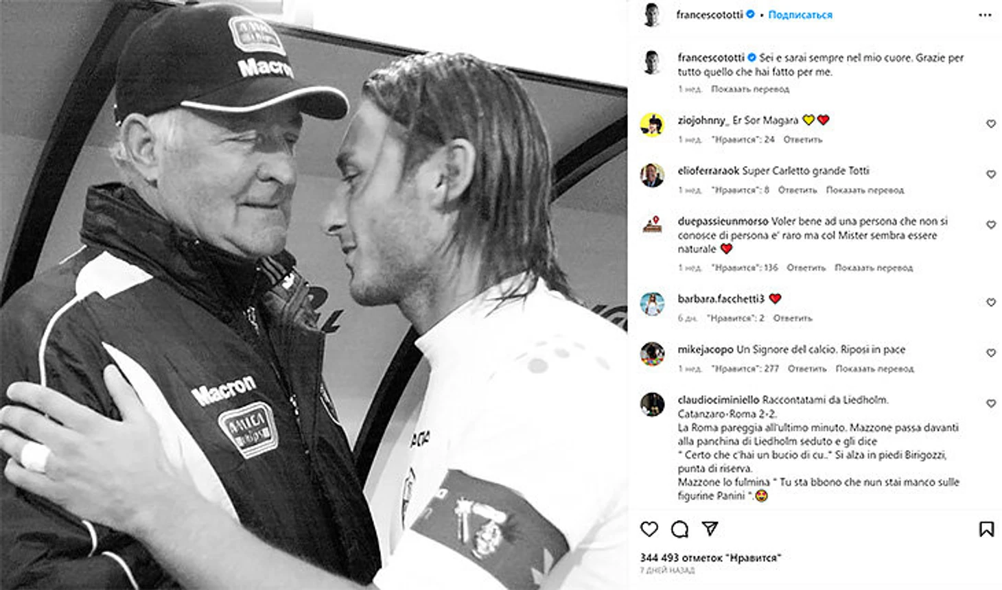 «Мы потеряли еще одну частичку Рима», «Гладиатор на скамейке, Синьор в жизни», «Твоя romanita’ останется навсегда. Прощай, sor Carletto» – баннеры на матче «Рома» – «Салернитана».