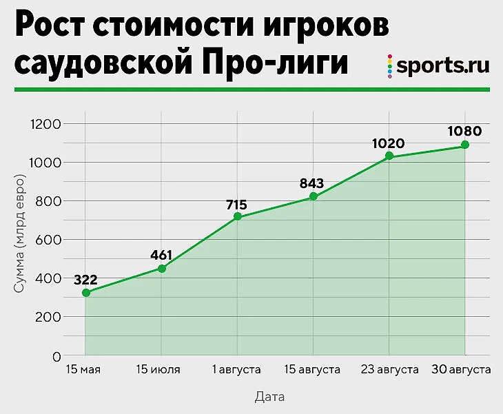 Миллиардную плаку чемпионат Саудовской Аравии пробил 23 августа. Оценим динамику.