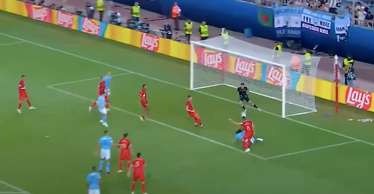 Вратарю достаточно было сделать 2-3 шага и перехватить мяч, но он этого не сделал