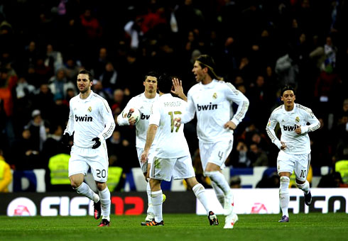 Меньшее количество времени владения мячом для них означает лучшее качество. Скорость доставки мяча «Мадридом» из одной части поля на другую просто невероятна. «Контратака» для испанских любителей футбола - «грязная» фраза, но «бланкос» освоили этот прием в совершенстве, и наблюдать за ним одно удовольствие. Реже используемое, но от того не менее ужасное оружие «Мадрида» - стандарты. Некоторые тренеры не позволяют своим защитникам отлучаться на подачи угловых, считая это неоправданным риском. Команда Моуринью придерживается иного мнения. По игре на втором этаже Серхио Рамос, возможно, самый опасный игрок в Испании. Месут Озил, Алонсо и Анхель Ди Мария непревзойденные подающие. Только две команды забили головой больше мячей, чем королевский клуб. Никто не заработал больше пенальти.