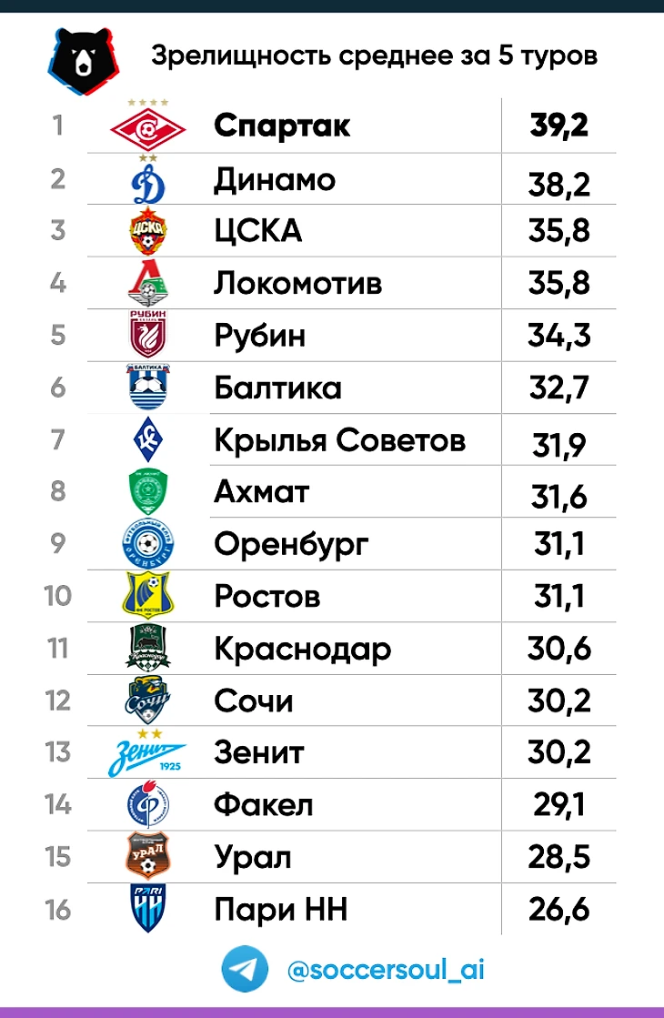 Спартак сейчас – самая зрелищная команда лиги, с показателем 39,2 балла. Это пока не помогает возглавлять турнирную таблицу, но смотреть на них приятно.