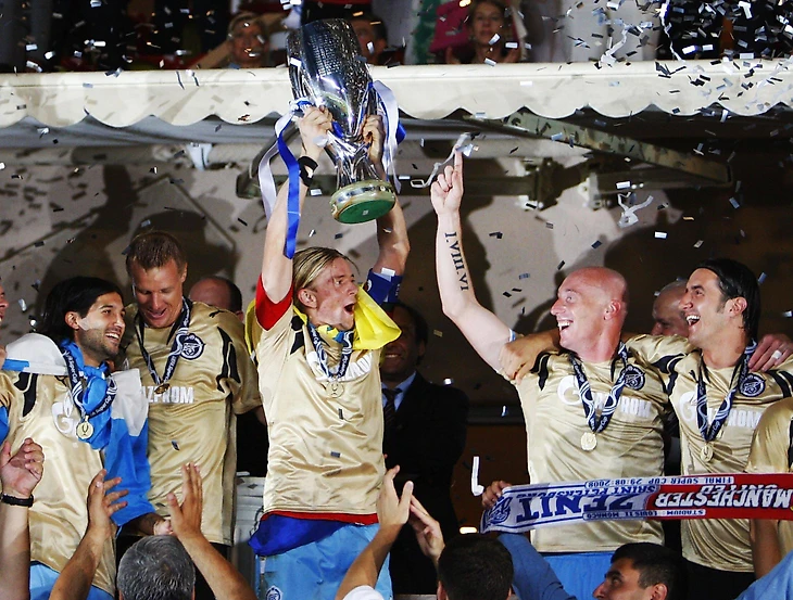 Хорошо помню тот день, финальный закуп перед школой, настроение уже стремится к нулю из за приближения 1-го сентября. Вечер, холодная кола, чипсы. Непривычные бело-голубые цвета на Данни, эмблема вроде Зенита, а на запястье тату Динамо. И ведь Зенит выиграл абсолютно по делу, моментов было больше, ударов. Ну и тот гол Скоулза рукой, на секунду показалось выпрыгнул как Роналду в финале того же года) а дальше уже дебют в группе ЛЧ с БАТЭ, Ювентусом и Реалом...