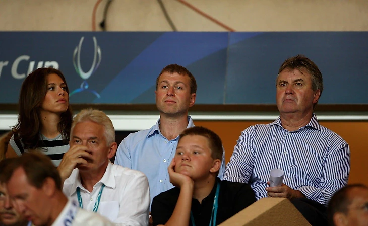 Гости на трибунах: Роман Абрамович, Гус Хиддин, Геннадий Тимченко.