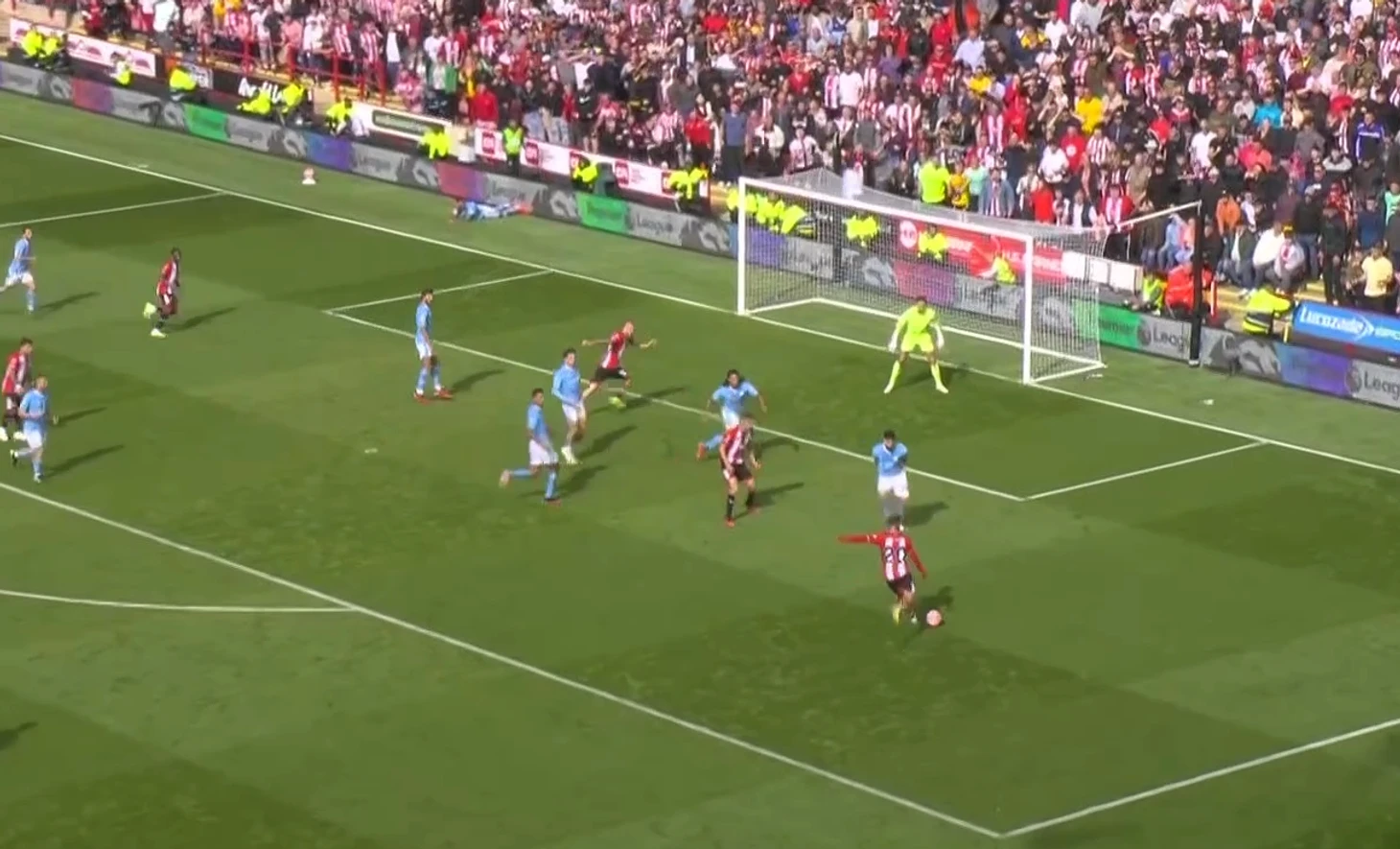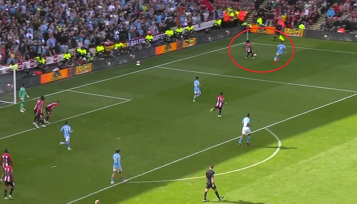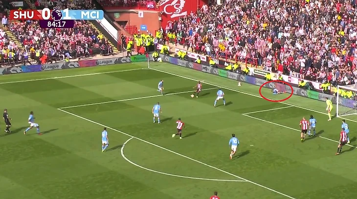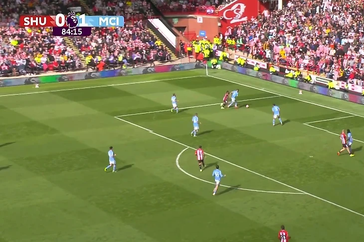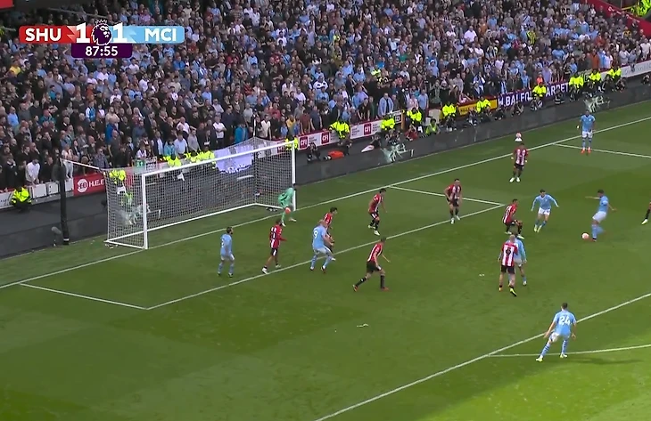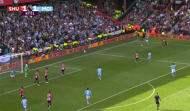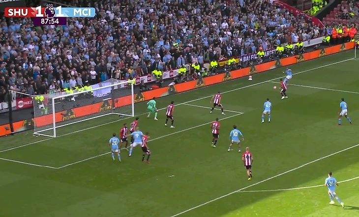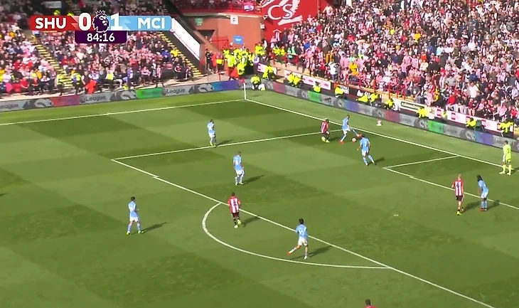 Атака «Шеффилда», казалось, не имела перспектив. Обвести Уокера не удалось, а мяч укатывался за лицевую линию.