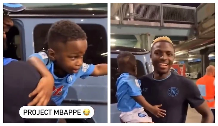 «Проект Мбаппе». Виктор Осимхен круто подколол отца малыша, с которым фотографировался😅😅😅