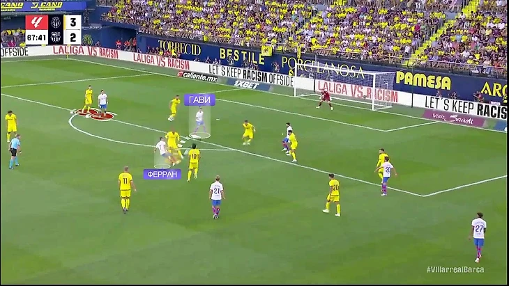 Эти два мяча пришли просто на ровном месте именно в тот отрезок, когда «Вильярреал» играл здорово и был намного лучше «Барселоны». Следующие два мяча в ворота хозяев пришли уже после того, как «жёлтая субмарина» сделала камбэк и вышла вперёд. В этот отрезок, надо сказать, уже «Барса» была намного лучше, особенно стоит отметить ход с выходом Феррана Торреса. Он не был каким-то неожиданным, но здорово попал в эту игру – стал частью квадрата «Барсы» в центре поля поля, только при этом самым нацеленным на ворота игроком:
