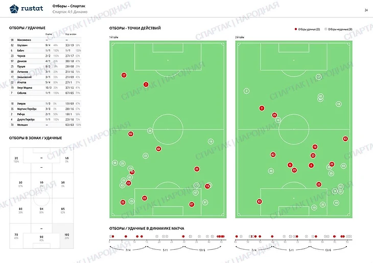 Спартак играл так резво в основном засчет реактивных действий Зиньковского и Рябчука.В меньшей степени Денисова( про которого ниже будет инсайд).Подтверждение тому - лишь в 6 случаях команда владела мячом более 45 секунд.Потому как именно скорость принятия решений и действия в финальной трети определяли эту игру.