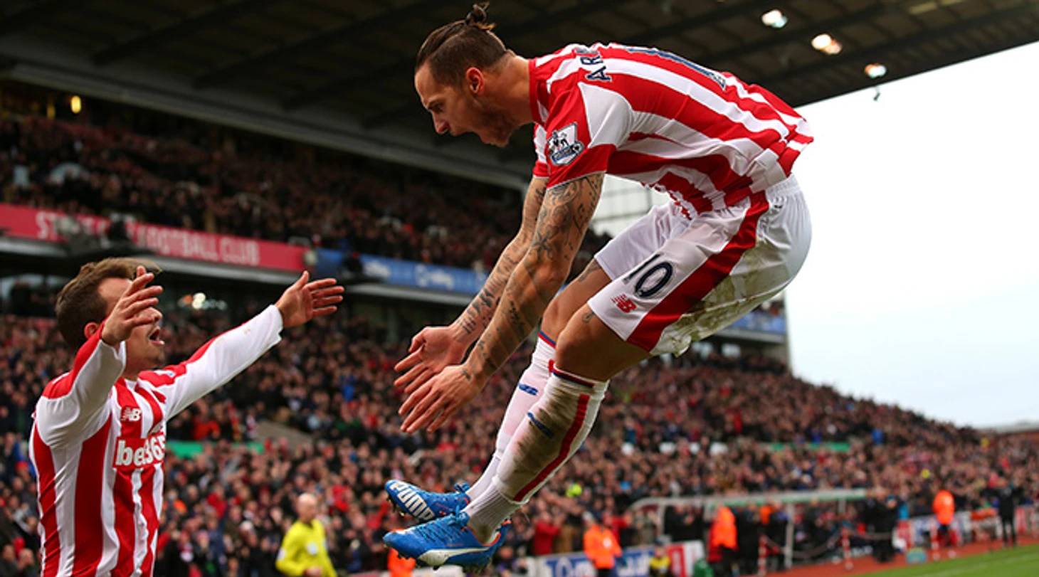 В итоге в последний день летнего трансферного окна 2013 года бременцы сплавили Марко в английский «Сток Сити». Адаптация на Альбионе прошла легко, и уже во втором туре, на «Эмирейтс», Арнаутович открыл счёт голевым действиям, отдав результативную передачу. Первый гол на новом месте он забьёт не менее именитому сопернику, «МЮ» Мойеса на «Олд Траффорде», роскошным прямым ударом со штрафного.