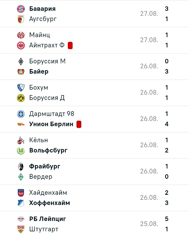 Две разгромные победы совершили Унион и Лейпциг. При чём первым приходилось тяжко, они с 25 минуте играли в меньшинстве, и дали возможность сопернику сравнять. Правда Унион продолжил традицию этого сезона, не забивать меньше 4 мячей. А вот Лейпциг проснулся только во втором тайме. Первый тайм был ужасен, и виднелось очередное поражение, но перерыв сделал своё дело, и вот уже Штутгарт, не забивает, а пропускает 5 мячей.