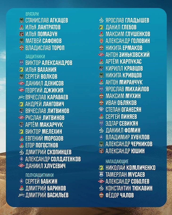 ● Вызваны сразу два вратаря «Краснодара»: если с Матвеем Сафоновым все понятно, то Станислав Агкацев – неожиданное выбор. В конце прошлого сезона он даже вытеснил Сафонова из основы, но в этом опять сел в запас.