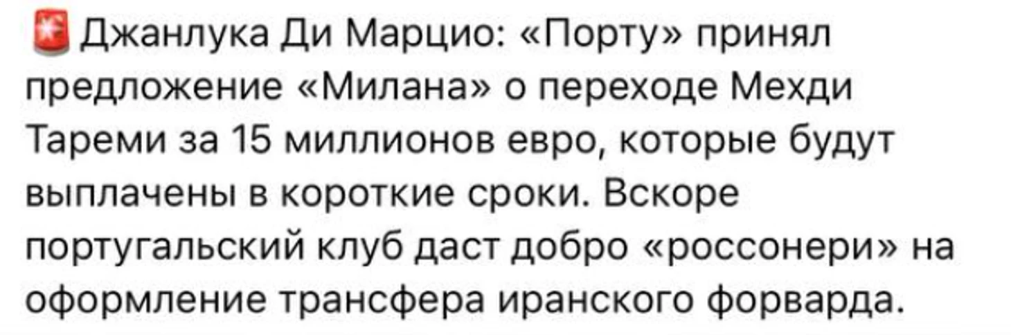 Правда, с представителями иранца у «россонери» не получилось, Беппе Маротта не одобрил бы таких выходок в переговорах.
