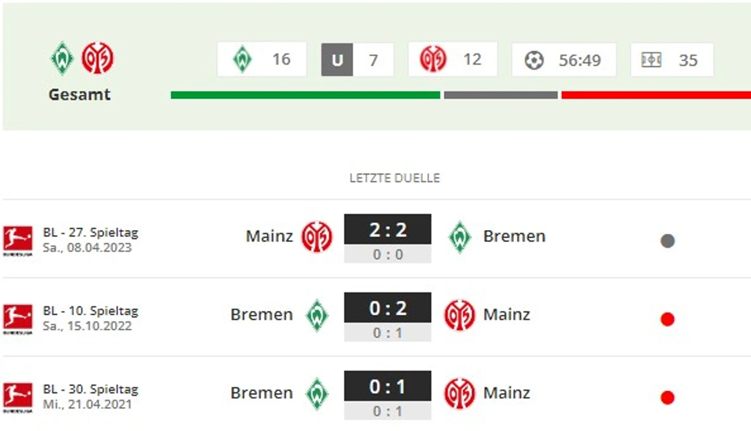 - «Карнавальщики» выиграли три последних гостевых матча Бундеслиги на «Везере», не пропустив (2:0, 1:0 и 5:0). Победа со счетом 5:0 17 декабря 2019 года стала самой крупной выездной победой «Майнца» в Бундеслиге.