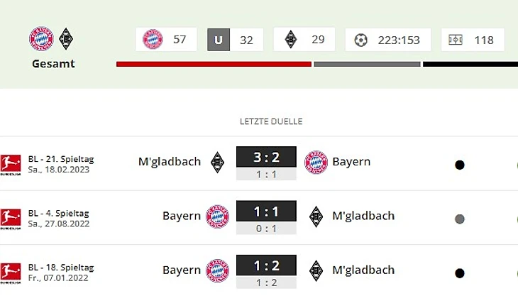 - С начала сезона 2011/12 «Боруссия Менхенгладбах» набрала 35 очков против «Баварии» – это, безусловно, рекорд (десять побед, пять ничьих, девять поражений). В последних четырех матчах Бундеслиги и последних пяти официальных матчах против рекордсменов «жеребята» остались непобежденными (три победы, две ничьих);
