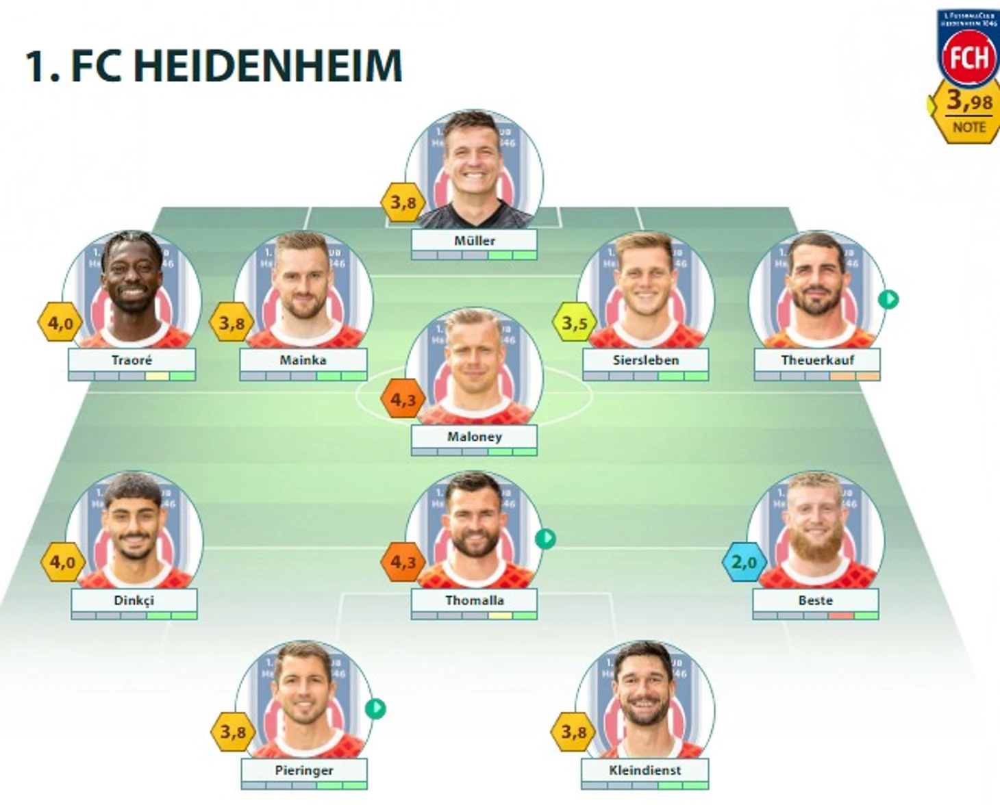 «Хайденхайм»: Müller - Traore, Mainka (c), Siersleben, Theuerkauf - Maloney - Dinkci, Thomalla, Beste - Kleindienst, Pieringer