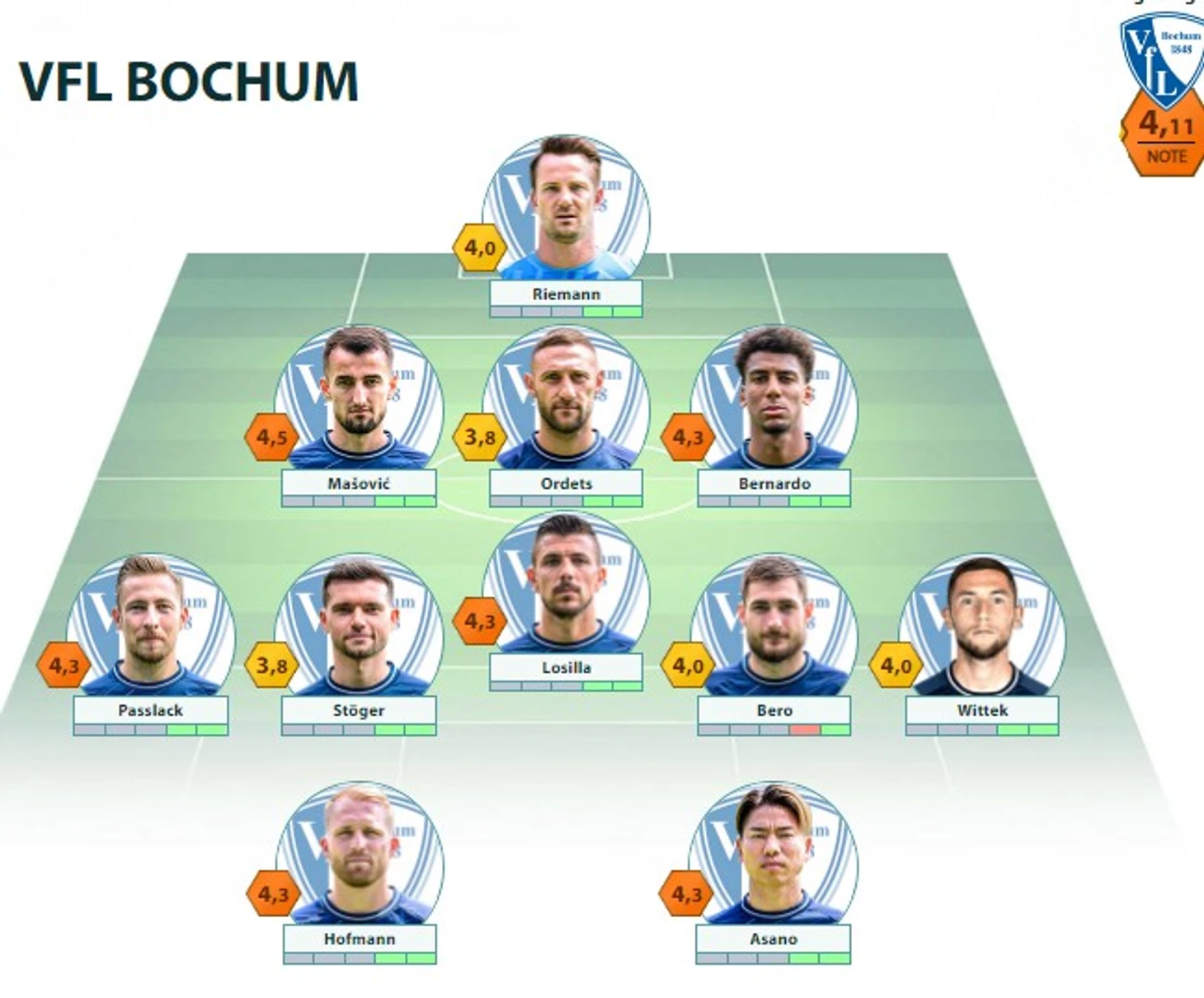«Бохум»: Riemann - Masovic, Ordets, Bernardo - Passlack, Stöger, Losilla (c), Bero, Wittek - Asano, Hofmann