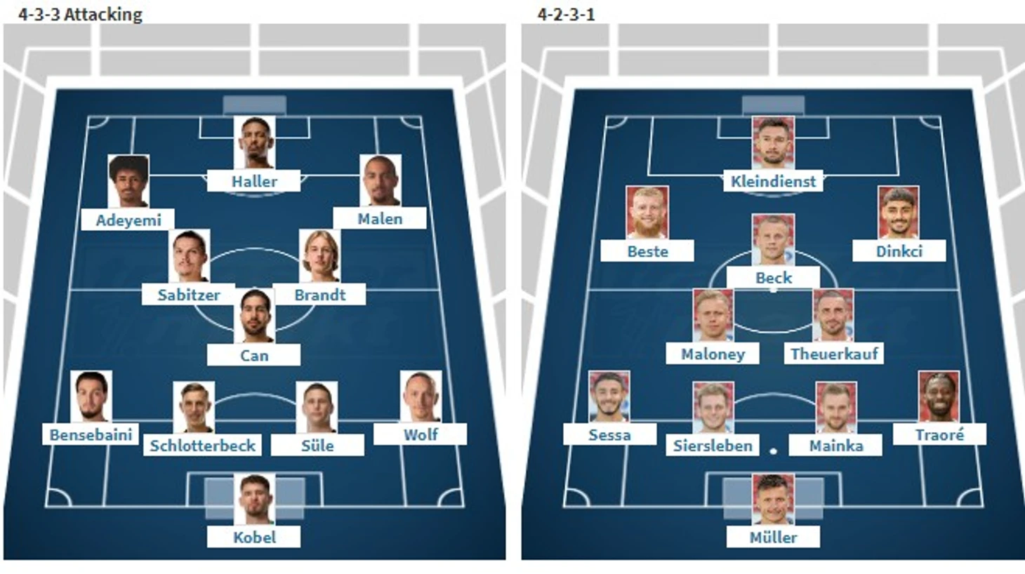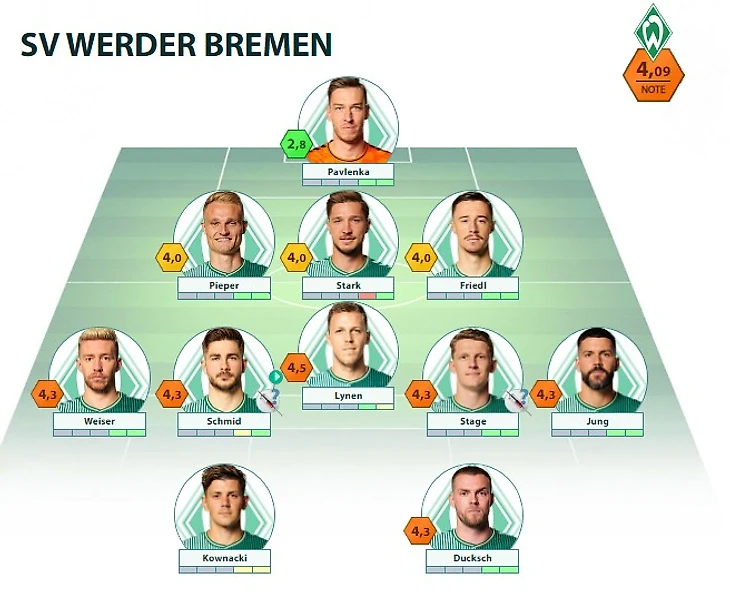 «Вердер»: Pavlenka - Pieper, Stark, Friedl (c) - Weiser, Stage, Lynen, Bittencourt, Jung - Kownacki, Ducksch