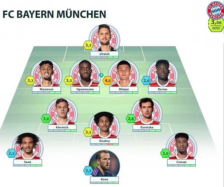 «Бавария»: Ulreich - Mazraoui, Upamecano, Kim, Davies - Kimmich (c), Goretzka - Sane, Gnabry, Coman - Kane