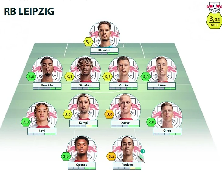 «РБ Лейпциг»: Blaswich - Henrichs, Simakan, Orban (c), Raum - Simons, Kampl, Schlager, Olmo - Openda, Poulsen
