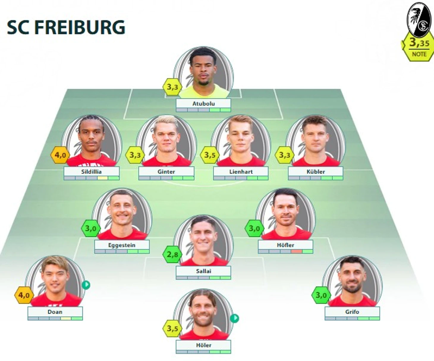«Фрайбург»: Atubolu - Sildillia, Ginter, Lienhart, Kübler - Höfler, Eggestein - Doan, Sallai, Grifo (c) - Höler