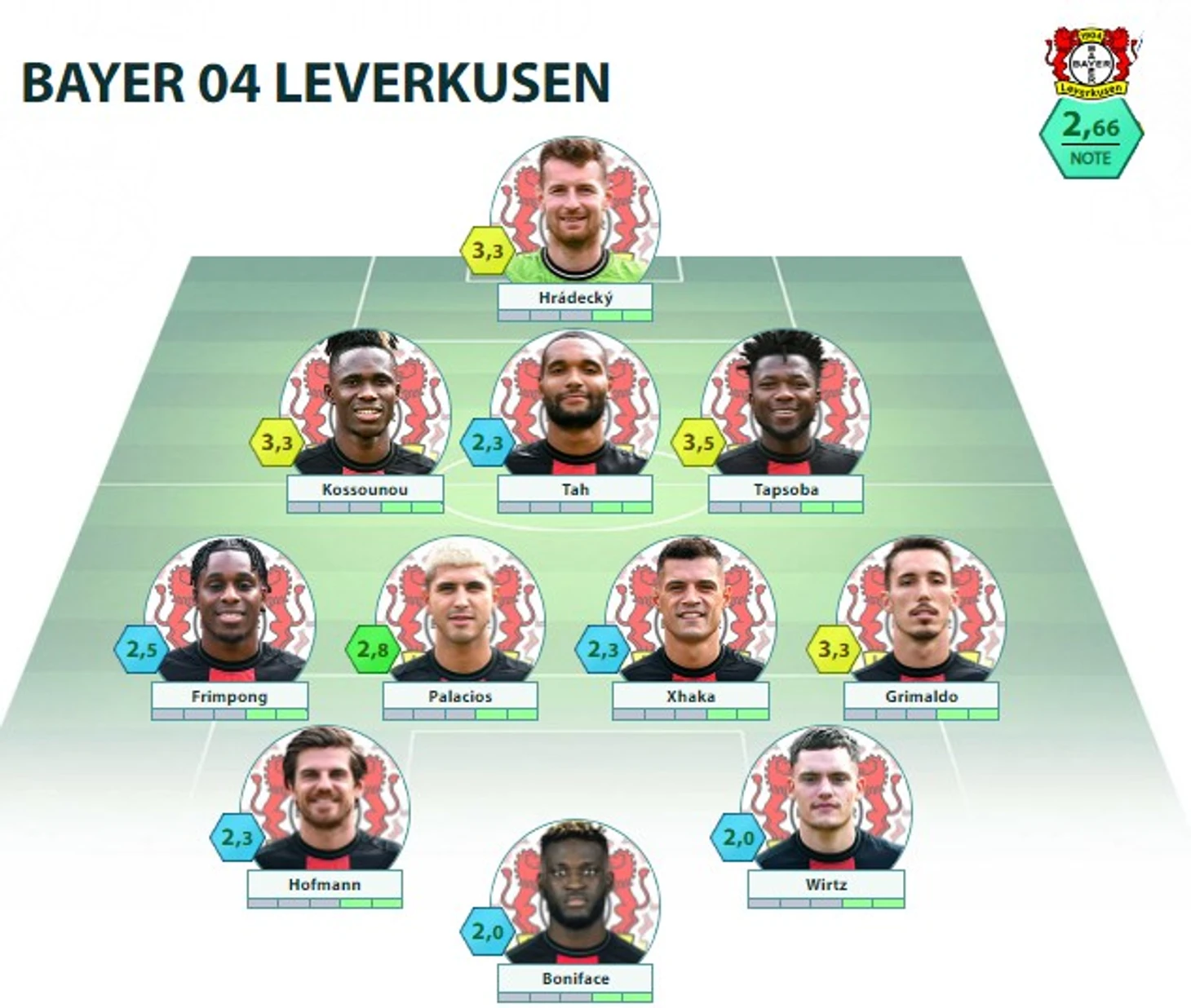 «Байер»: Hradecky (c) - Kossounou, Tah, Tapsoba - Frimpong, Palacios, Xhaka, Grimaldo - Hofmann, Wirtz - Boniface