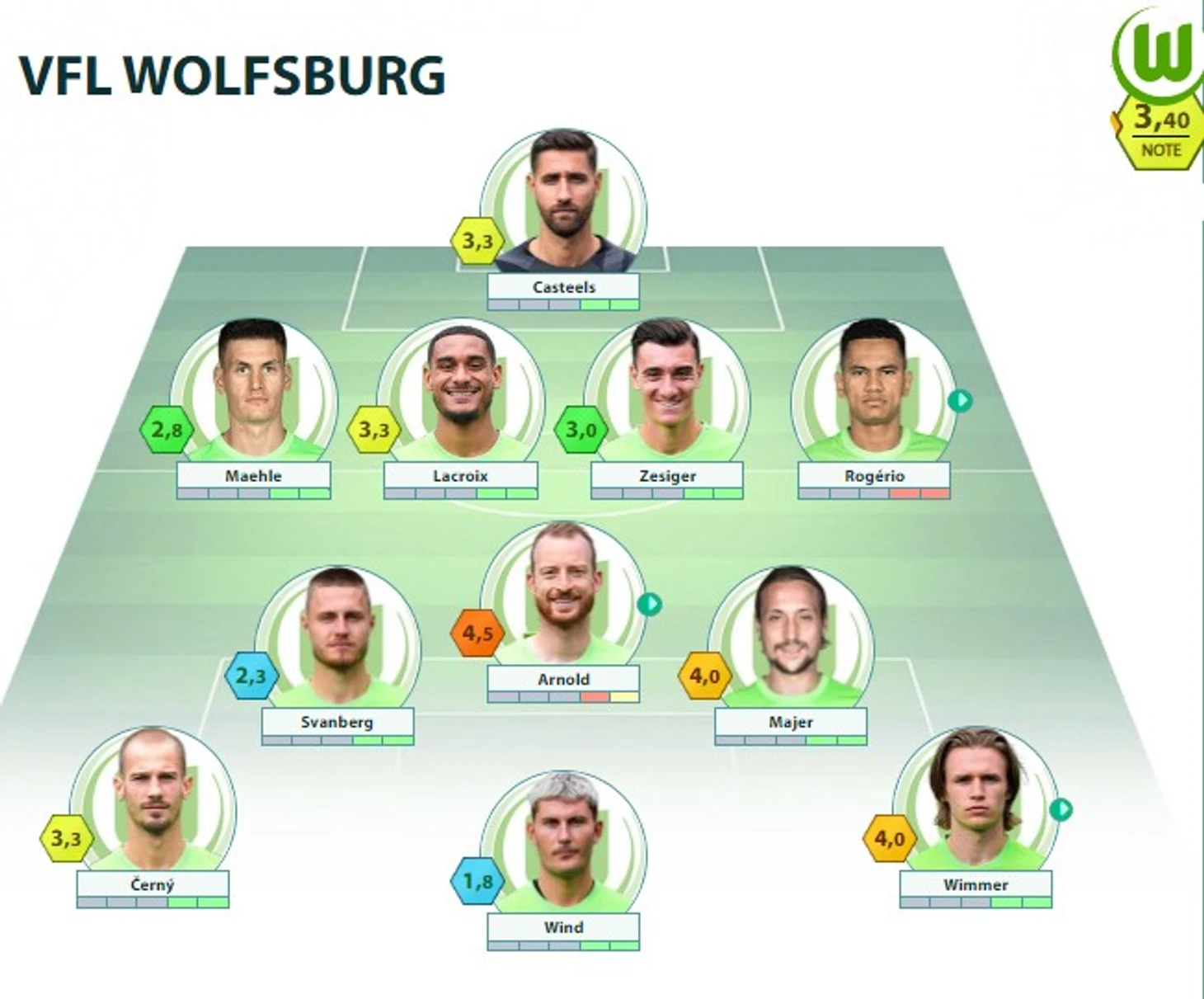 «Вольфсбург»: Casteels - Maehle, Lacroix, Zesiger, Rogerio - Svanberg, Arnold (c), Majer - Cerny, Wind, Wimmer