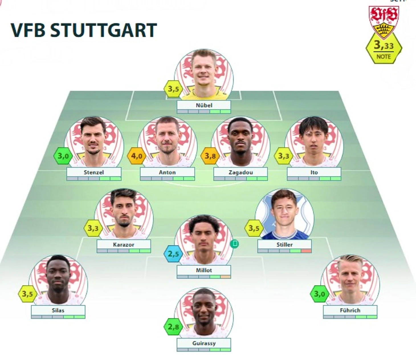«Штутгарт»: Nübel - Stenzel, Anton (c), Zagadou, Ito - Stiller, Karazor - Silas, Jeong, Führich - Guirassy