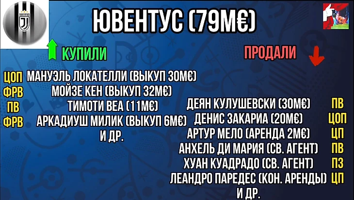 2ой по тратам «Ювентус», но это скорее вопреки чем благодаря. Почти всю сумму «зебры» потратили на выкуп Локателли, Милиака и Кена, ну и Тимоти Веа непонятно для чего им. 3+5 за весь сезон для вингера-нападающего - это откровенно слабо. А если ещё учесть, что команду покинул один из лидеров Куадрадо, Ди Мария, Кулушевски, то вся надежда видимо будет на лучшую форму Кьезы, который начал за здравие. А так лично у меня плохие ожидания от «Ювентуса». Состав слабый + ещё и нифига не обновился, а тренер консерватор без идей. 2ка Вам, товарищи туринцы.