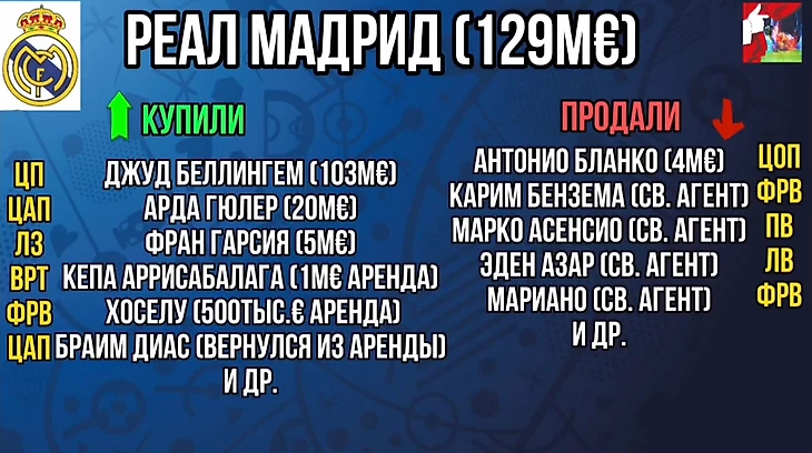 Ну и закончим мы «Реалом», который потратил больше всех в Испании, но по сути кроме Джуда Беллингема, который стал лидером и приносит очки на старте сезона, выделить по большому счёту некого. Фран Гарсия, Браим Диас, Арда Гюлер, Хоселу – это конечно добротные игроки, но пока не соответствующие уровни и амбициям Мадрида. Да и Кепа это кот в мешке, который может выдать супер матч, а может сдуться и привести в любой момент.