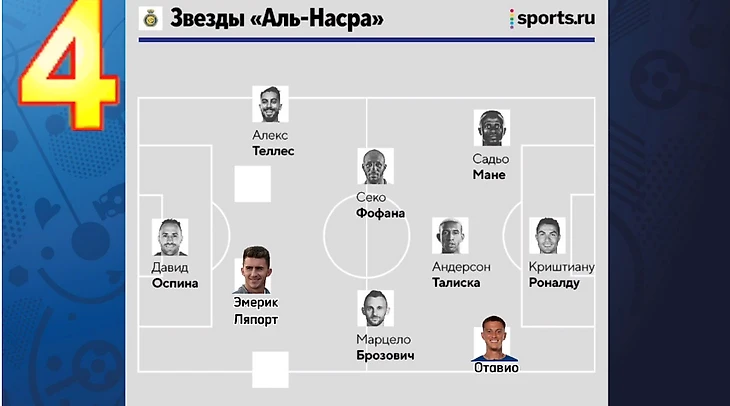 Только 3им идёт «Аль-Наср» Роналду. Тренер Криштиану привёз к себе в помощь Мане, соотественника Отавио, Брозовича, Фофана, Ляпорта и Алекса Теллеса. По сбалансированности неплохо, потому что даже если «Аль-Наср» будет играть по схеме 4-2-4, в защите всё подчистят работяги Брозович и Фофана. Но в отличие от своих соперников у «Аль-Насра» нету хорошего вратаря, это может стать серьёзной проблемой. Так что ставим 4, вратарь в такой лиге с такими звёздами значит очень много.