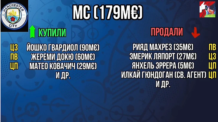 Что касается минусов и проблем у горожан, то можно придраться к трансферу Ковачича, ведь хорват это не прямая замена Гюндогану, он не такой интеллектуальный как немец и не подключается к атаке 2м темпом. Оценка 4.5 из 5 думаю будет логична.