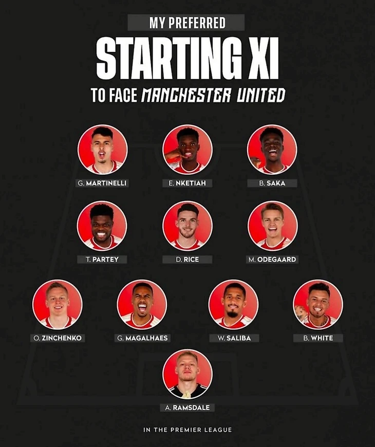 Состав ,который хотелось бы видеть. Вполне допускаю, что он таким и будет.Возникает только вопрос, что с Габриэлем. Его выход в этом матче вызывает сомнения, но если Артета не будет экспериментировать (в матче с «МЮ» они ни к чему), то шансы на победу в общем-то хорошие.И хочу надеется, что Но кто знает, что там на уме у Микеля и может быть он захочет попробовать что-то новое и в матче против «Юнайтед»