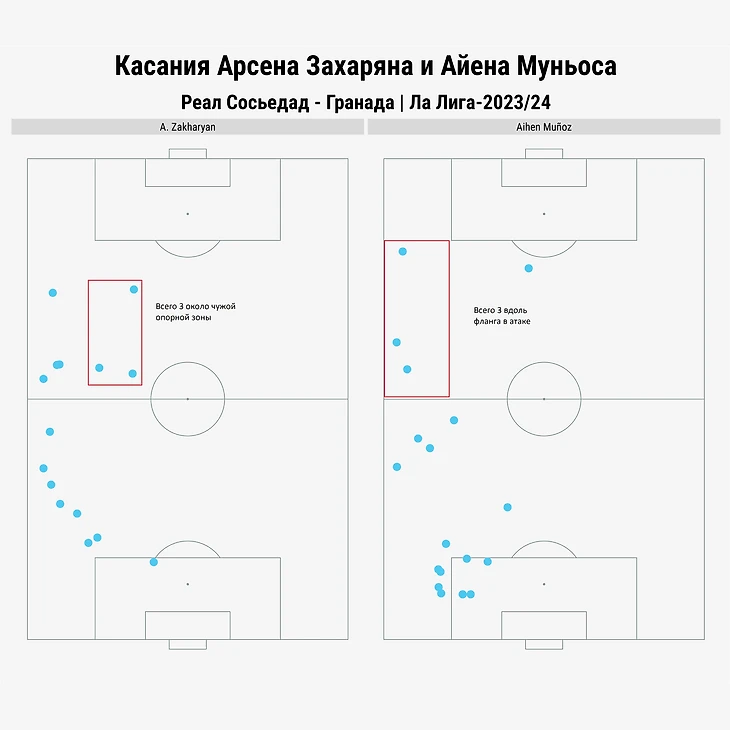 Против «Лас-Пальмаса» Арсен действовал в качестве левой восьмерки, теперь вышел на левый фланг полузащиты. Это подтверждает предположения о том, что Иманоль Альгуасиль видит Захаряна в качестве универсального атакующего футболиста – не приковывает его к одной конкретной зоне.