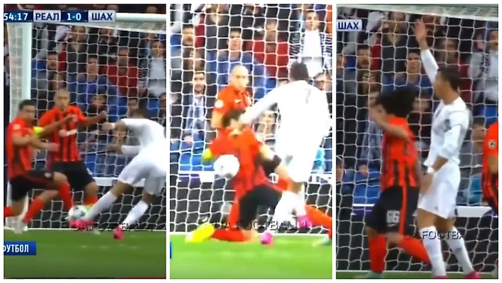 В первом туре Лиги чемпионов-2015/16 на «Сантьяго Бернабеу» приехал донецкий «Шахтер». «Реал» разобрался 4:0, но один из голов получился очень спорным. Дарио Срна бросился под удар Криштиану и отбил его, как кажется со всех повторов, спиной.