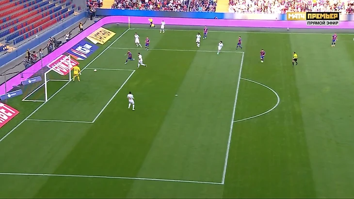 Пожар начался с паса Нуралы Алипа от края штрафной вратарю – уже тут выглядит опасно.