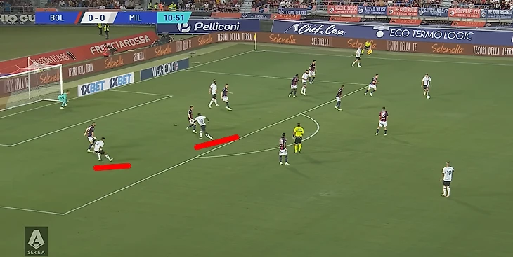 Утверждаем: на данный момент у Милана работают 2 фланга: за счет рывков и физической силы с соперниками расправляется Леао, за счет интеллекта и техники проявляет себя Пулишич. Обязательно стоит сказать о смене позиций вингеров. Часто можно увидеть 11 или 10 номера в центре чужой штрафной или на чужом фланге. Яркий пример — гол Болонье, когда Леао забежал в центр.