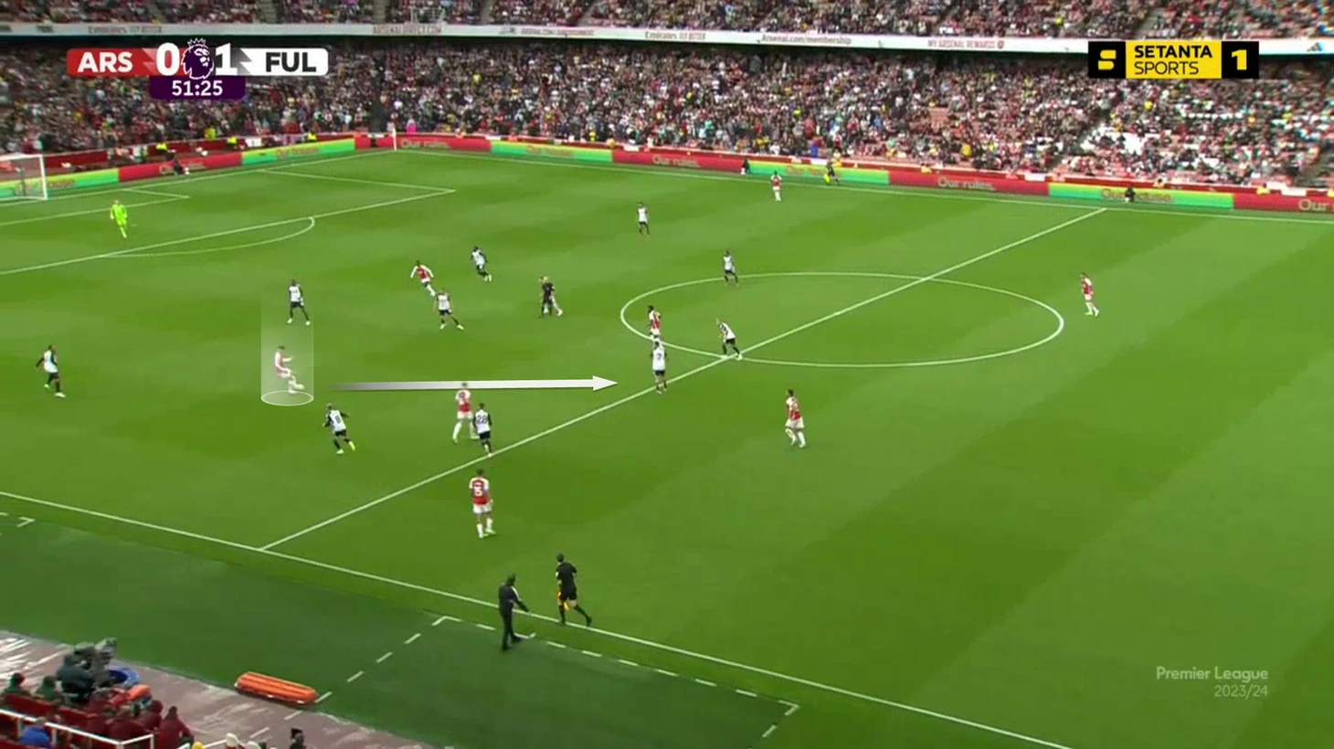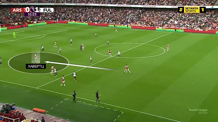 Против «МЮ» Кай пробовал открываться похожим образом – еще один прием, который постепенно копирует у Джаки. Но, пожалуй, это первая игра, где от него в принципе требовалось подобное движение. «Ноттингем», «Кристал Пэлас» и «Фулхэм» практически не прессинговали и не проверяли Хавертца в этом аспекте.