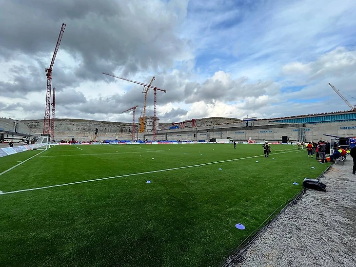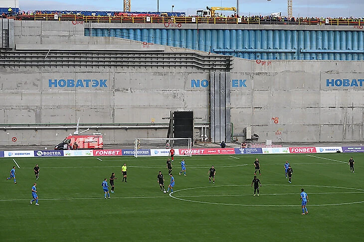 Причина шума – локация. Игру проводили в сухом доке на берегу моря в поселке Белокаменка, закрытом объекте спонсора РФС «Новатэка» недалеко от Мурманска. Коллега Денис Пузырев из Мурманска возмущался, что такой матч никому не нужен: Белокаменка – режимный объект, болельщиков почти не будет, картинка – тоже не супер, море из закрытого дока не видно, да и болельщики из Кирова заслужили хотя бы возможность посмотреть на команду в относительно высокой стадии Кубка России.