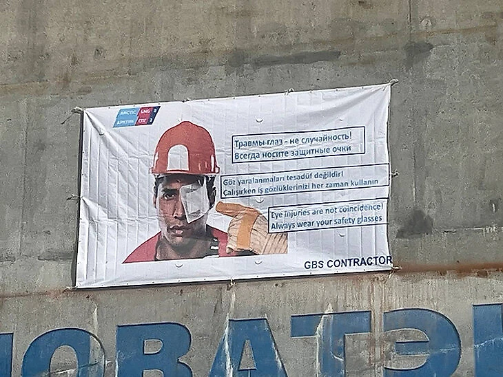 Такие махины собирают 17 000 человек. Сейчас в Белокаменке вахтовым методом работает 12 000 (потому что в футбольном доке только начинают работы, такое количество сотрудников пока не нужно), но к концу года доедут все остальные. Большая часть работников живет в оранжево-синем городке рядом с заводом. Оттуда вообще можно не выбираться, есть даже три футбольные площадки – из Мурманска каждый день на работы приезжает только полторы тысячи.