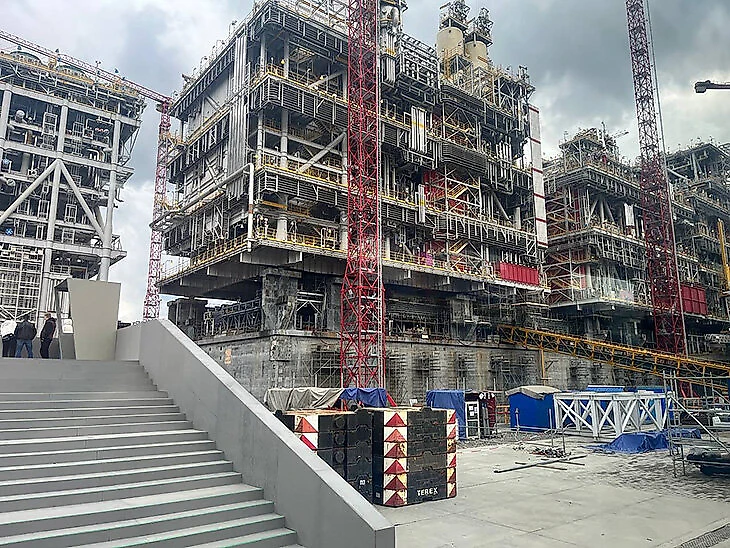 Строительство первой газовой платформы закончилось в конце июля, на его завершение в Белокаменку приехал Владимир Путин. После выпуска платформы в доке остается огромный слой ила. За несколько недель в доке нужно было избавиться от 20 сантиметров ила и сделать газон, на котором можно играть в футбол.