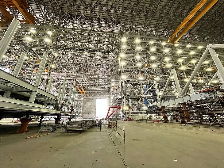 Внутри цех выглядит внушительно: 72 метра в высоту, объем – 9 миллионов кубических метров.