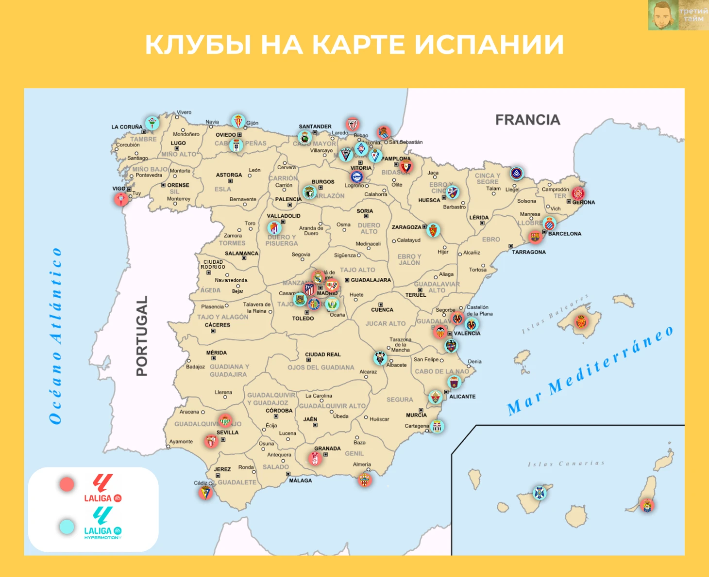 Ну и бонусом оставлю карту клубов двух лиг Испании, можете подтянуть географию на спортивном сайте. Спасибо, что дочитали до конца.