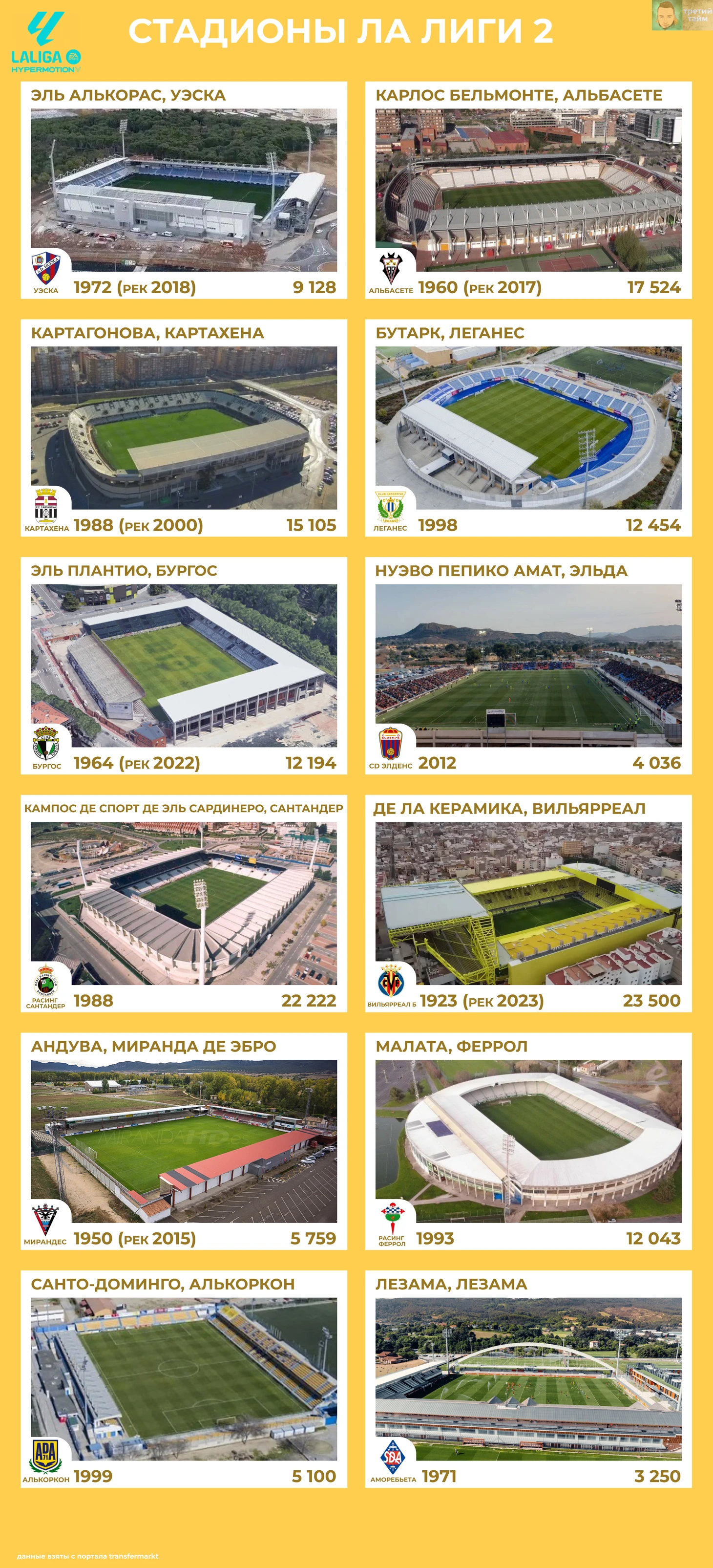 В целом в во втором дивизионе Испании 7 клубов имеют стадионы вместимостью менее 10 000 человек. У Италии было таких стадионов 5 штук. Ну и клубов там на 3 меньше.