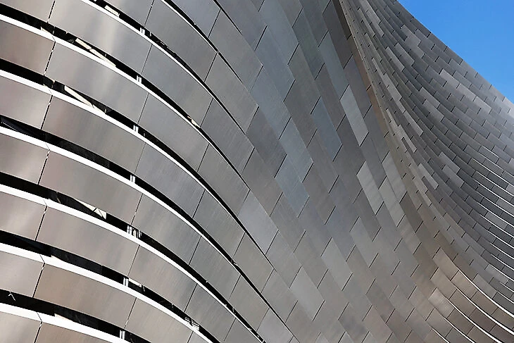 Внешнюю оболочку стадиона, фасады и крышу покроют единой обшивкой из металлических реек.