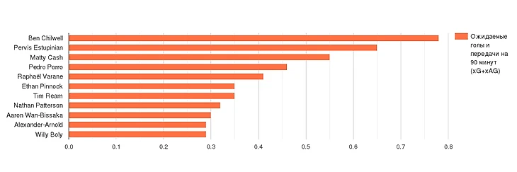 По ожидаемым голам и ассистам все кажется предсказуемым. По крайней мере Бен Чилуелл и Эступиньян — это как раз топ-2 защитника по популярности в фэнтези.
