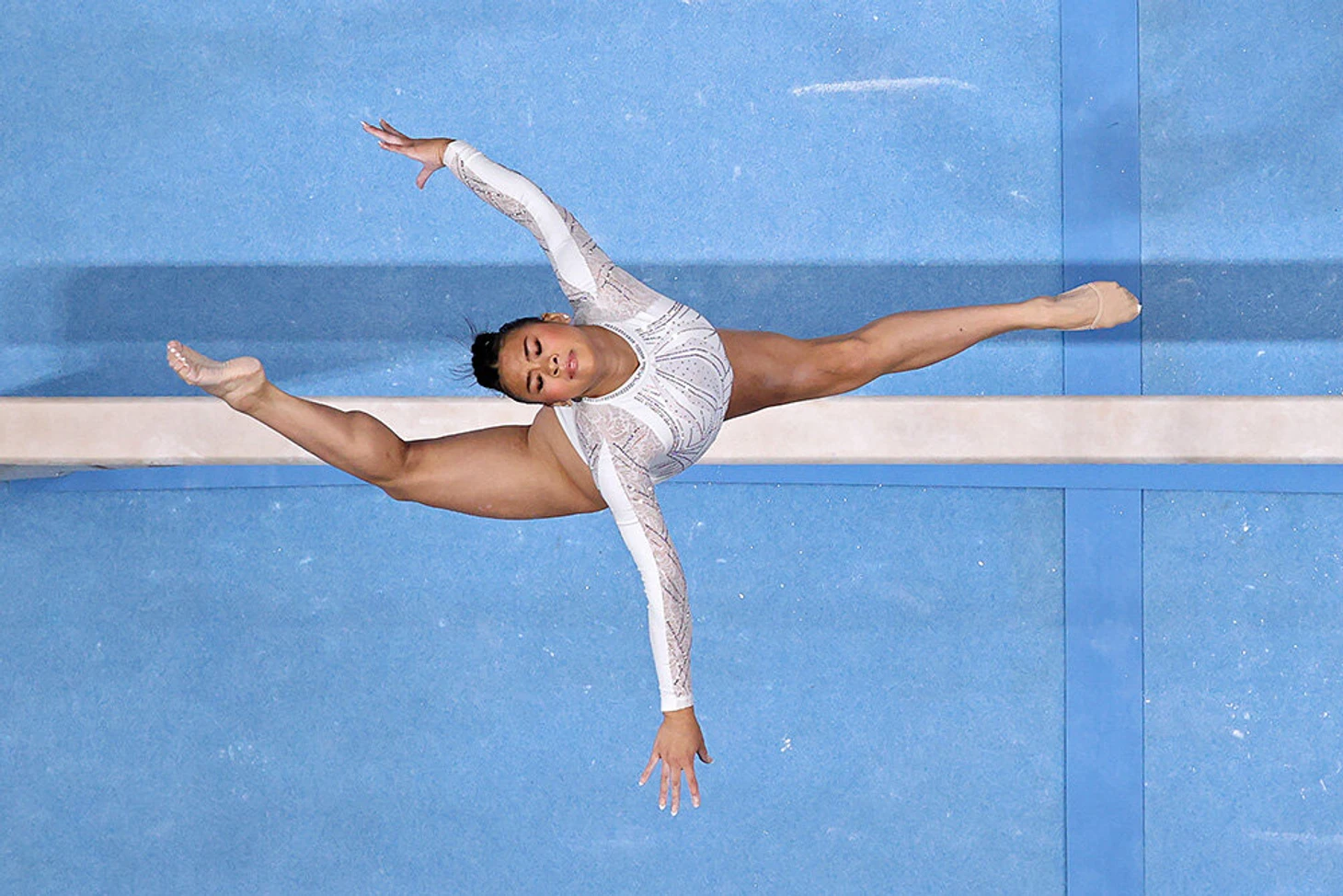5 августа. В кадре только спортсменка и снаряд. Это Симона Байлс, а чуть дальше будет продолжение этой минималистичной темы с чемпионата мира по легкой атлетике.