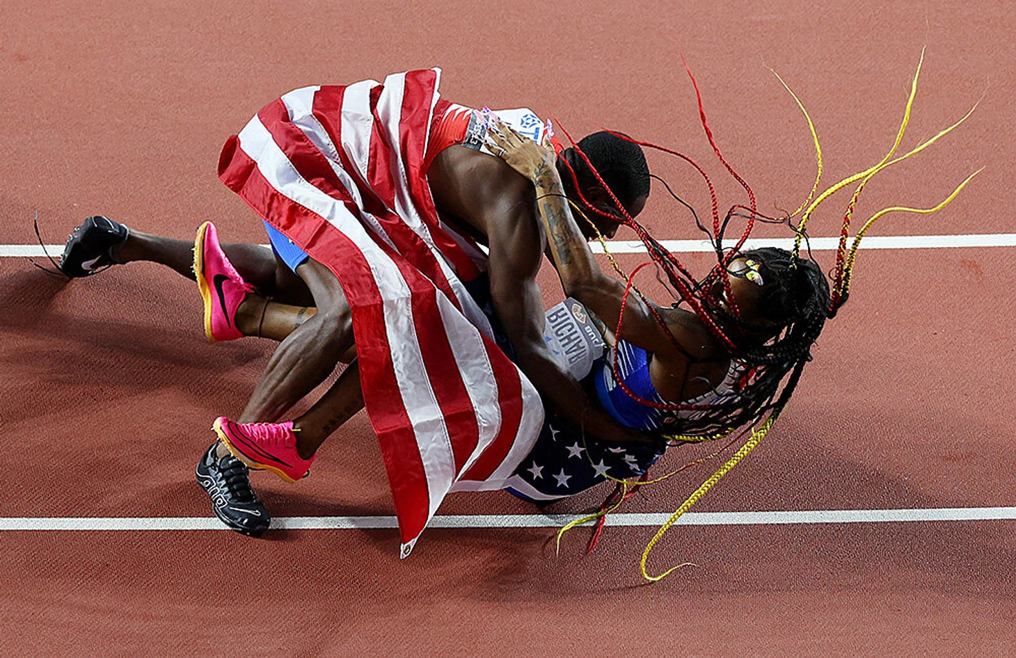 26 августа. Еще один забавный момент с прошедшего ЧМ по легкой атлетике. Разогнавшуюся Ша’Кэрри Ричардсон (два золота и самые длинные ногти турнира) сразу после финиша эстафеты внезапно поймал Кристиан Коулмен, ее приятель по американской сборной.