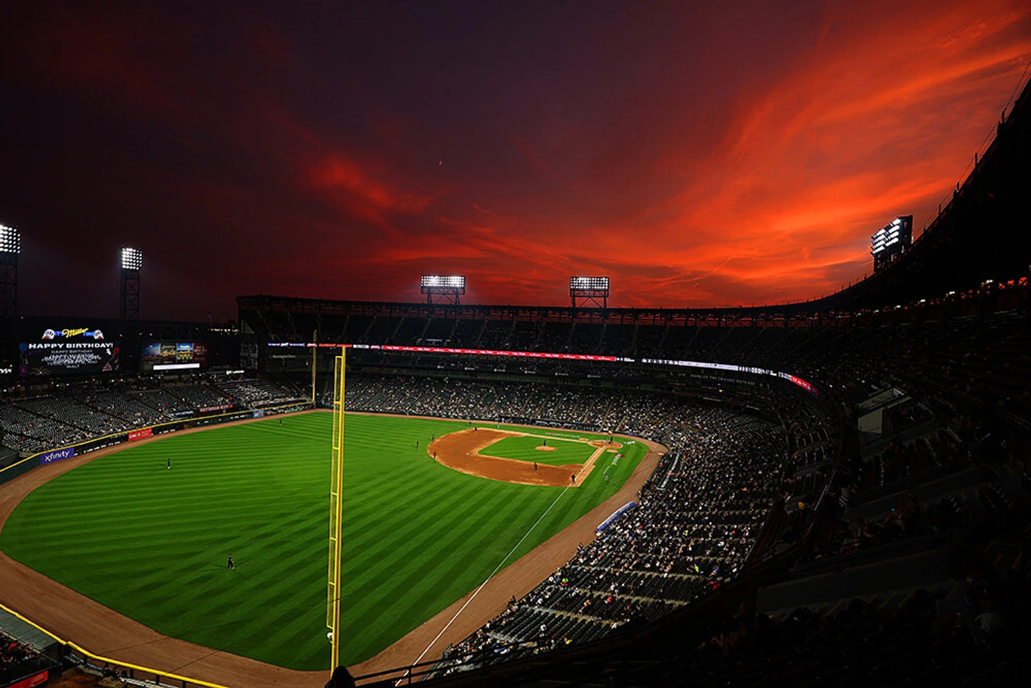 21 августа. Закат над Чикаго во время бейсбольного матча между «Чикаго Уайт Сокс» и «Сиэтл Маринерс».