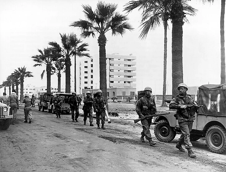 Сначала на Египет напал Израиль, а следом и британско-французские войска. Насер в ответ на это блокировал кораблями Суэцкий канал, но Египет ожидаемо войну проигрывал. Ее остановили Хрущев, который вообще угрожал термоядерным ударом за нападение, ООН (впервые отправили миротворческую миссию) и президент США Дуайт Эйзенхауэр (вероятно, опасался Третьей мировой).